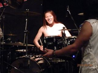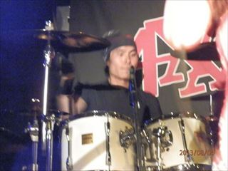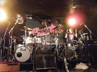 次に、ツイン・ドラムとなる。ライヴ・ハウスMUSIC FaCTORYの店長であり、ドラムの名手、岩ちゃんを迎えてアースシェイカーの『モア』を演奏。
