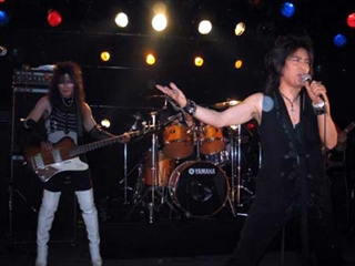 ギターを振り上げるアクションもチョーカッコイイ、最後のバーニーさん・大谷レイブンさんとのツインギターを、新さんとポツダムブルーまさみさんが再現。