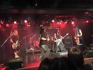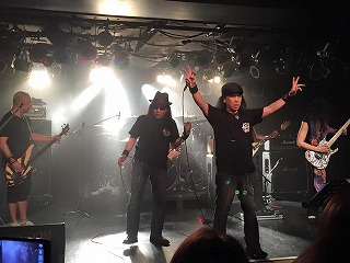 そして2回目のアンコール。メンバーは早々に現れ、オープニング・アクトを務めた「NSG」のギタリスト高橋氏を招きいれ、スコーピオンズの”ブラック・アウト”を演奏した。