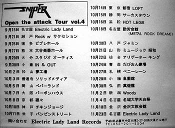 ロクf掲載のスケジュールです。1984 OPEN THE ATTACK TOUR VOL.4。このショットは良く見ますが一番かっこいいよね!