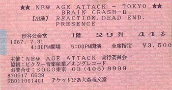 こちらも"New Age Attack"のチケットですが、場所は目黒・鹿鳴館。